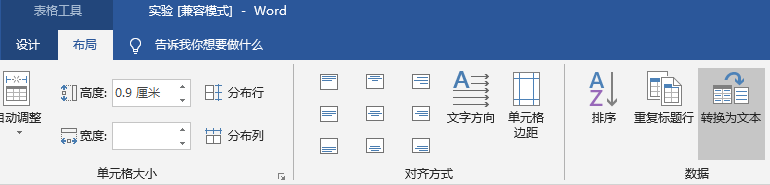 (1)打开word,将表格选中,选择“布局”-“数据”-“转换为文本”;