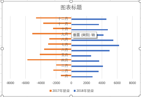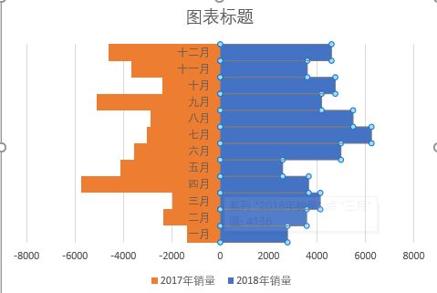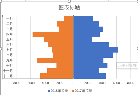 (1)数据表是2017和2018年的同比数据,为了作图需要,在D列再添加辅助列“D2=-B2”,向下填充;