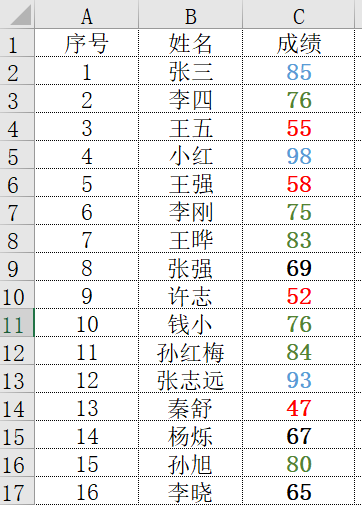 (3)同理,操作其他的数据,你会在原表格中看到“成绩”这一列已经按照我们的需求设置好了,实现了数据的分类表示。