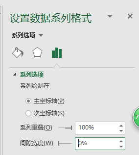 (3)设置数据系列,系列重叠“100%”,间隙宽度“0%”,效果如图;