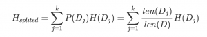 假设我们将数据集D划分成kk 份D1,D2,…,Dk,则划分后的信息熵为: