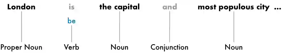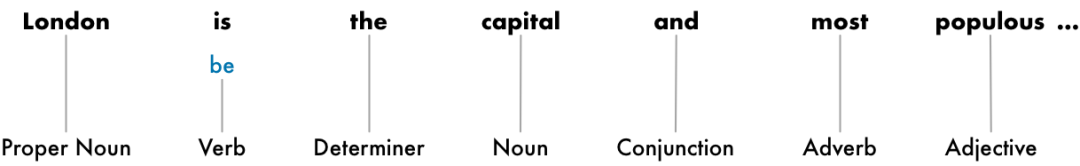 有了这些信息,我们就可以开始收集一些非常基本的含义,比如句子中的名词包括“伦敦”“首府”,所以这句话有大概率是在谈论伦敦。