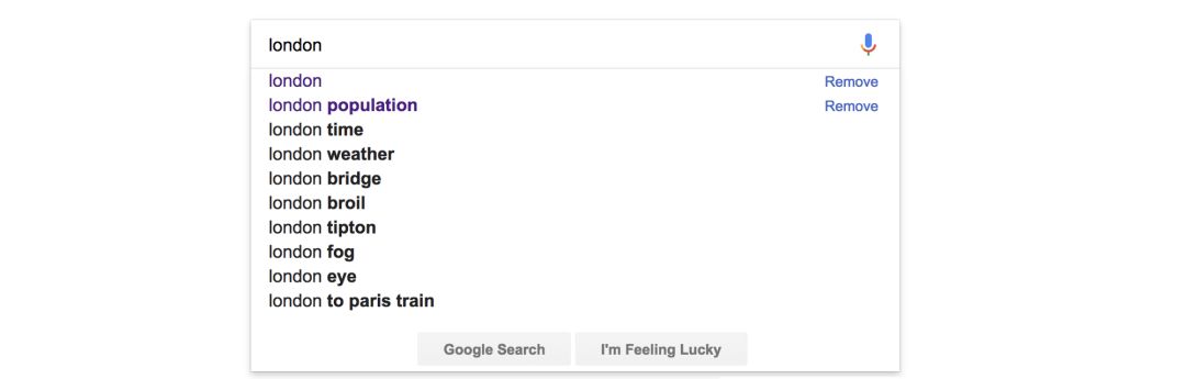 谷歌对“London”一词的文本查询自动补全