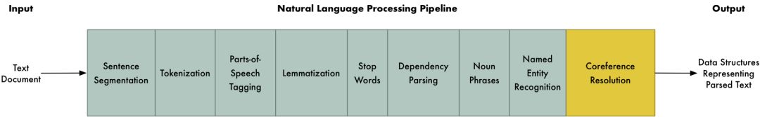 但我们还有一个棘手的问题,就是英语中包含大量代词,比如“he”“she”“it”,这些词频繁出现在句子里,是我们为了避免重复提及某个名称而使用的简称。人类可以根据上下文理解这些代词的含义,但NLP模型不行,因为到目前为止,它只是一句一句地检测。