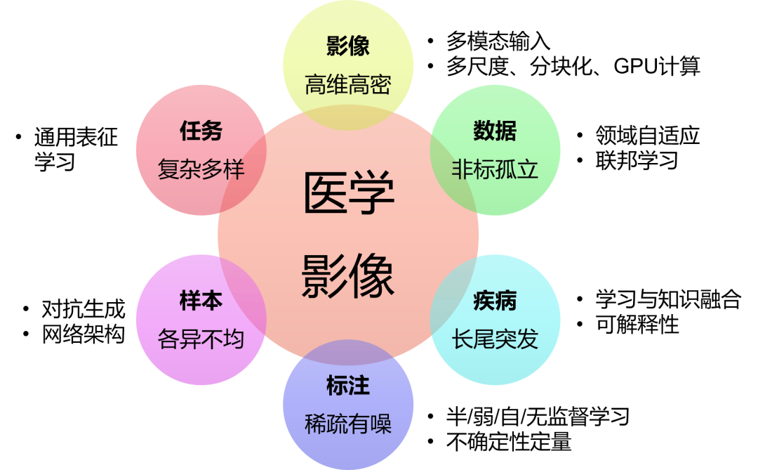 图1)医学影像的显著特点及其对应的智能算法的热点趋势。