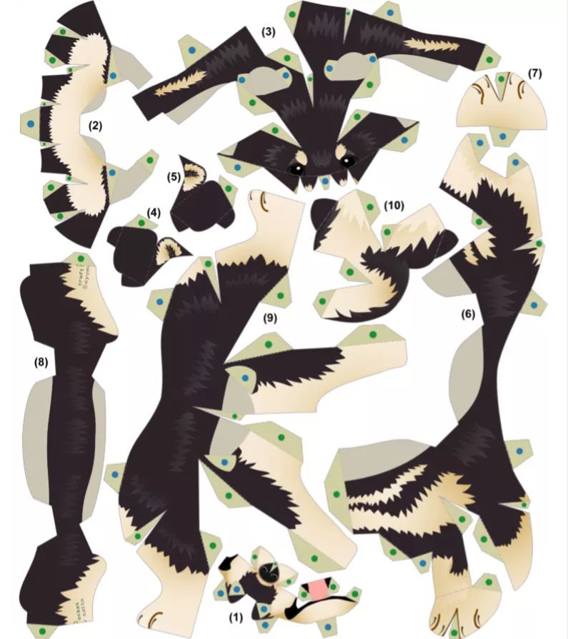这只可爱的柴犬,仅用一张 A4 纸就能创造它,你可以从网站上下载到它的「细胞」组成,提供 1:1 尺寸的纸模型,下载完打印后直接就能开动啦,只要按照图片模型剪开,并按所示绿点粘黏,你就能慢慢地就能见证它的成长