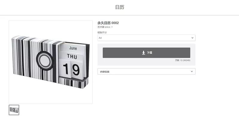 如果你懒得使用 PPT 制作日历,在强大的 Creative Park 中也有提供日历模板的下载,不仅有平面版,还有立体的日历 😲,就像这样: