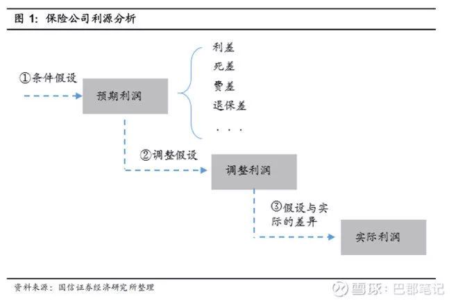 按照财务体系的假设条件计算出的利润是预期利润,然后在下一个资产负债表日如果有证据表明适用的假设跳进发生变化,则需调整假设调价,相应得到调整利润;最后随着保单的逐步到期,假定条件与现实情况之间存在差异,还需要在对利润进行修正,最后得到实际利润。