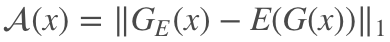 对于第三部分重构图像编码得到的潜在变量 ẑ ,这部分对于正常数据而言,希望得到的 ẑ 与原始数据直接编码得到的 z 无差别最好,也就是对于最好的得分判断,对于正常数据而言理想状态下希望。当然这是最理想的状态,但是对于正常数据还是希望 A(x) 越小越好,所以引入了一个潜在变量间的误差优化。