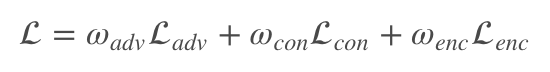 这里的 ωadv,ωcon,ωenc 是调节各损失的参数,可以根据具体实验设置。