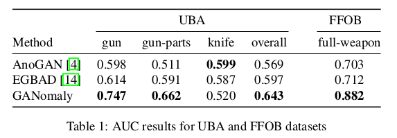 实验还对大件行李异常数据集(University Baggage Anomaly Dataset - (UBA))做了实验,数据集包括 230275 个图像块,图像从完整的 X 射线图像中提取,异常类别(122803)有 3 个子类 - 刀(63,496),枪(45,855)和枪组件(13,452),对于另一个数据集选择了枪械检测(FFOB)。