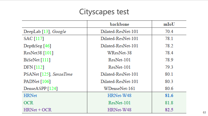 从数据看,HRNet+OCR的方法的结果为82.5,这是发表文章时业界最好的结果。