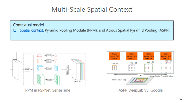 以前的方法主要是Spatial context(空间上下文)比如有PPM、ASPP,它是在像素点周围有规律地选出一些像素点,以求得当前像素点表征,进而进行标注,我们把它称为空间式。