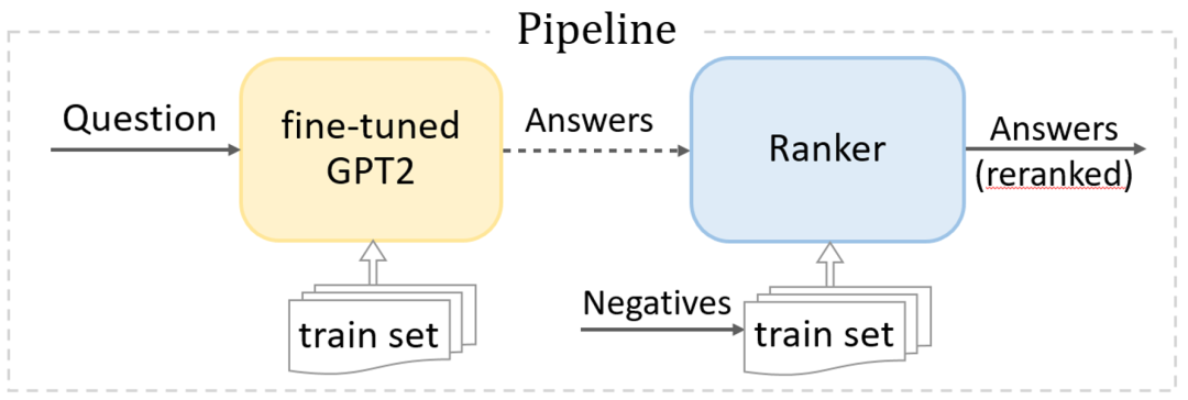对于该答案生成问题,HITSZ-HLT 研究组使用了先采样后排序的流水线框架(下图 4)。再由掩码模型计算采样结果的典型程度,将该数值经过sigmoid函数转换为是典型答案的概率,最后根据概率值降序输出最终的回答列表。其中,生成模型在数据集上微调,每个答案的权重均为 1;掩码模型学习不同答案的典型程度,具体训练过程如下: