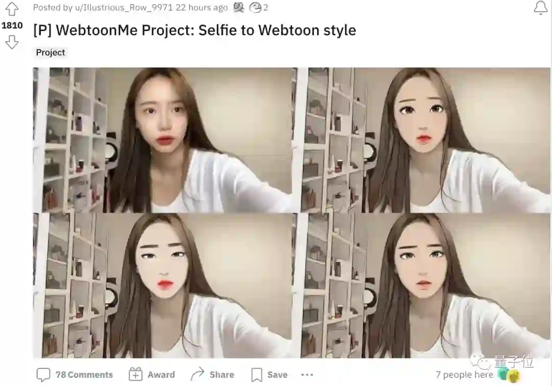 这,就是最近在Reddit上大火的一个自拍变漫画AI,不到一天就收获了1800+赞。