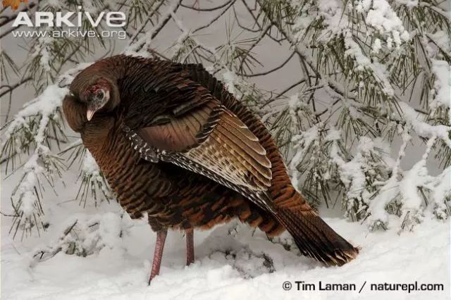 雪地上的雌性野生火鸡。图片:Tim Laman