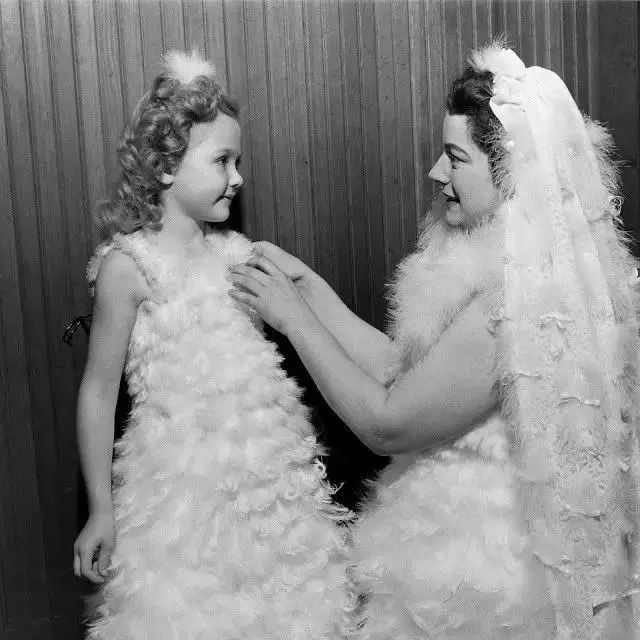 1948年用火鸡羽毛制作的婚礼礼服。在20世纪40年代末,曾一度流行火鸡羽毛服饰,很多女士购买由火鸡羽毛制作的礼服。图片:vintag.es
