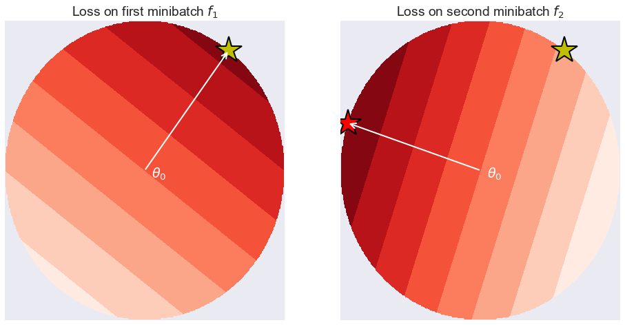 我们独立地绘制 f_1(θ) 和 f_2(θ) 两个函数图(即,独立地评估两个小批量的损失函数)。我认为,以下将是一个有意义的度量: