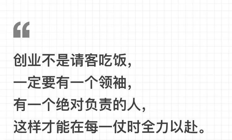 后来我见到很多创业团队,那个状态,几个创始人,温文尔雅、相敬如宾,看那个状态就知道,他们之间是请客吃饭的关系,没有领袖。