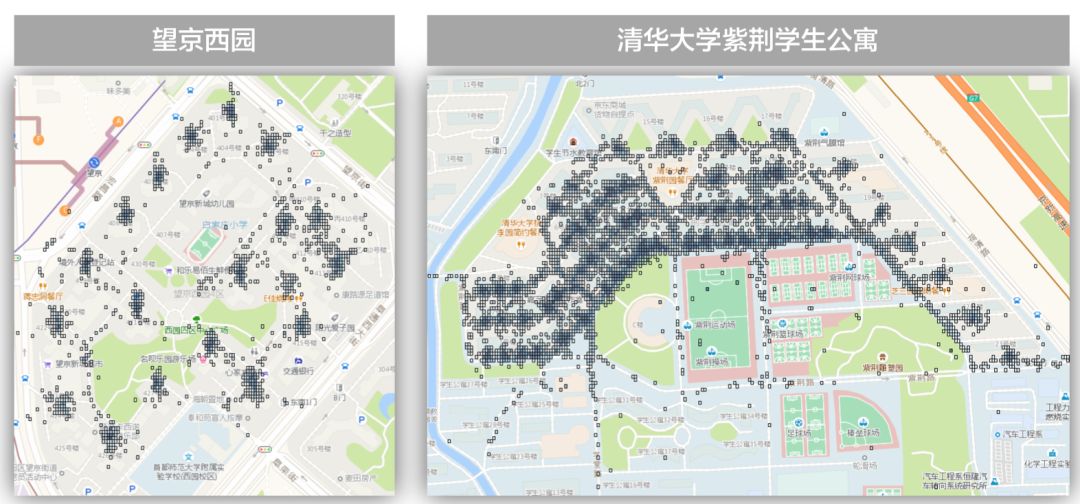 上图右侧部分看到,我们挖掘的交付点基本上能与楼宇的单元门对应。而且没有明显偏差比较大的部分。这个质量基本达到我们之前设定目标,也证明配送大数据的巨大潜力。