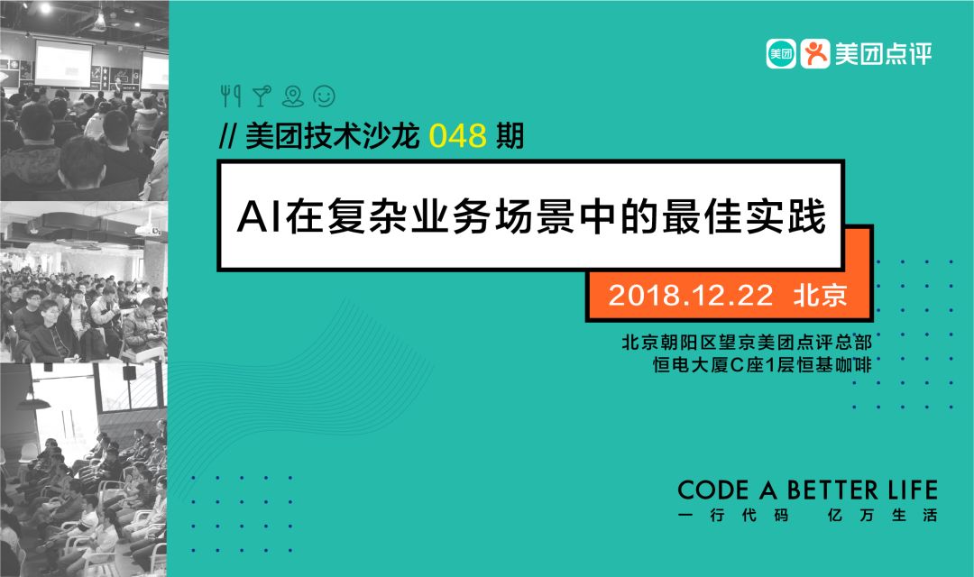 本文作者何仁清作为出品人策划了《AI在复杂业务场景中的最佳实践》,12月22日周六下午将在望京恒电大厦C座美团点评北京总部1层恒基咖啡举办。本次技术沙龙,美团联合京东技术专家共同探讨AI在搜索、NLP、智能调度等方向的深度实践,希望与业界技术同仁一起交流学习。欢迎参加~