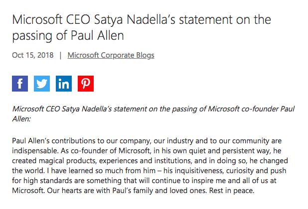 https://blogs.microsoft.com/blog/2018/10/15/microsoft-ceo-satya-nadellas-statement-on-the-passing-of-paul-allen/