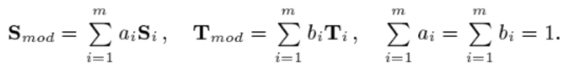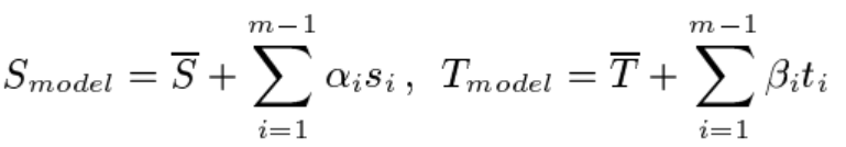 任意人脸模型均可以由数据集中的 m 个人脸模型进行加权组合,如下: