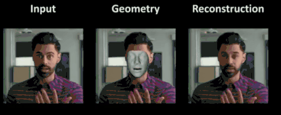 如下动图所示,最右边的重建人脸除了没有皱纹以外,身份特征和面部表情都和原图相当一致,阴影效果也高度还原。只是眼睛部分似乎不太对,显得浑浊无神。