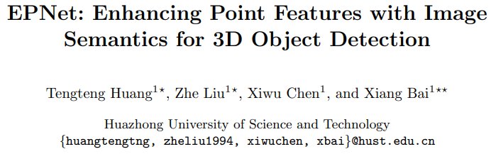 《EPNet: Enhancing Point Features with Image Semantics for 3D Object Detection》提出了一种新的融合模块,在不需要任何图像注释的情况下,对具有语义特征的点特征进行逐点增强