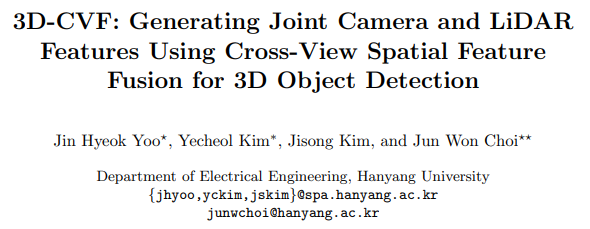 《3D-CVF: Generating Joint Camera and LiDAR Features Using Cross-View Spatial Feature Fusion for 3D Object Detection》提出了 voxel-based 的多模态特征融合
