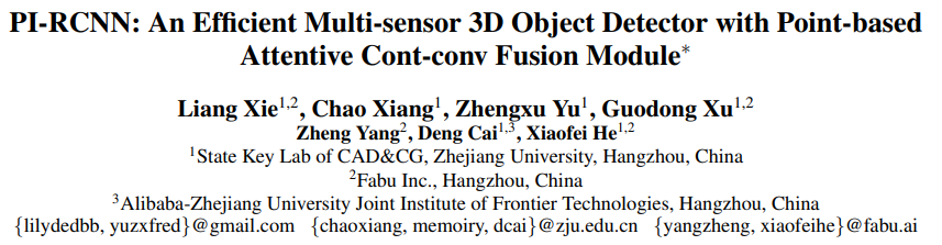 《PI-RCNN: An Efficient Multi-sensor 3D Object Detector with Point-based Attentive Cont-conv Fusion Module》提出了 point-based 的多模态融合方法
