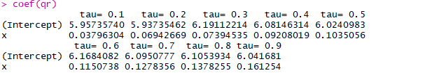 qr <- rq(y ~ x, data=dat, tau = qs)