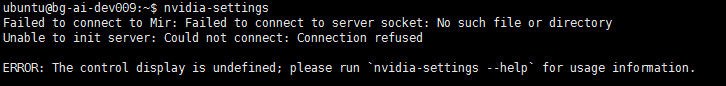 一般在ubuntu上搭建完深度学习环境后,许多朋友习惯把ubuntu的X桌面服务禁用掉,然后通过另一台windows系统的电脑通过ssh来连接GPU机器使用。这个时候X server已经被禁用掉,开机也自动启动命令行模式,上面第一种做法就不适用于这种情况了。原因是,nvidia-settings只能在X桌面环境下运行,若你想强行使用这个设置就会报错: