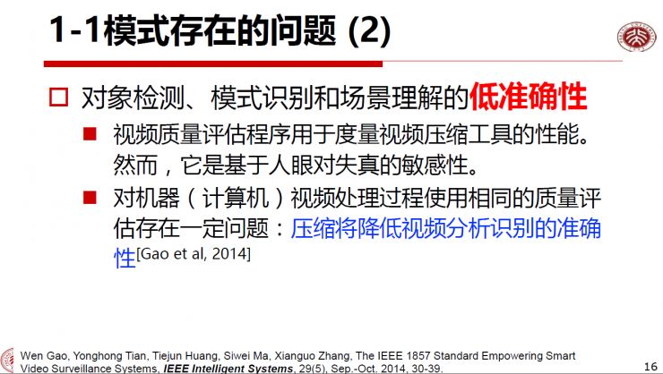 如果对一个实际图像要求特别高,非常较真,但这个地方要用整个视频流的特征,这些特征现在还没做完、还在做,并且安排了CDVA的工作组。