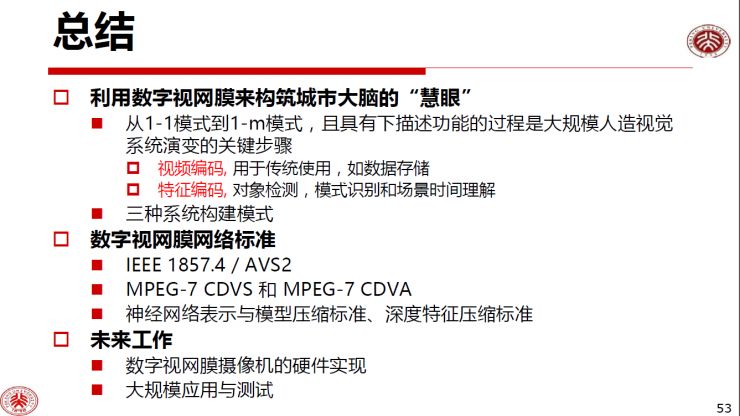 所以数字视网膜其实涉及到视频编码,特征编码也是一体化,叫MPEG CDVS。