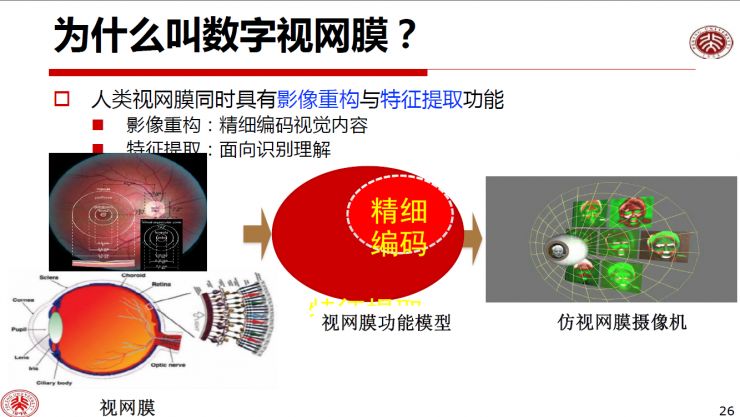 数字视网膜与人的眼睛既具有影像重构(精细编码视觉内容),又具备特征提取(面向识别理解)的功能。