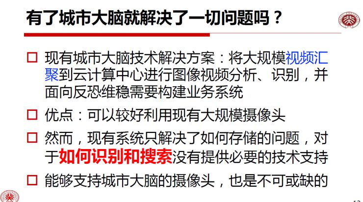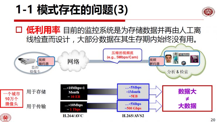 如果只是存储问题,但没及时分析,很容易导致辨识时间较长,因为你把编码通过网络送到存储端,如果要用的话,还要解码,要做特征提取、特征分析识别等,一系列流程下来,实际上很耗费时间。