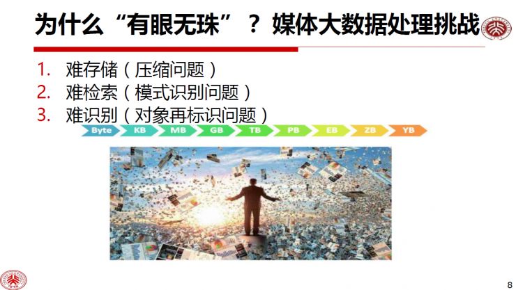 现在的视频监控系统,从一开始就面临数据量太大、存储量太大,查找数据不易等一系列挑战,这些挑战可以归纳成三个问题:难存储、难检索、难识别。