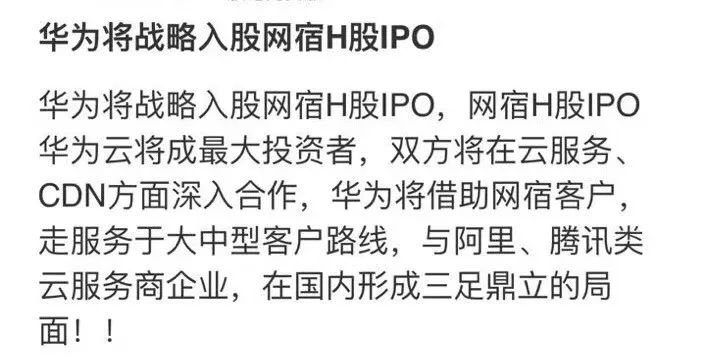 之前也曾传闻华为入股网宿科技,目前未落实。