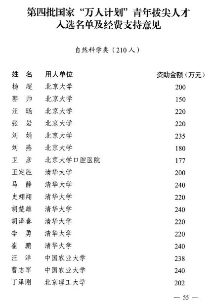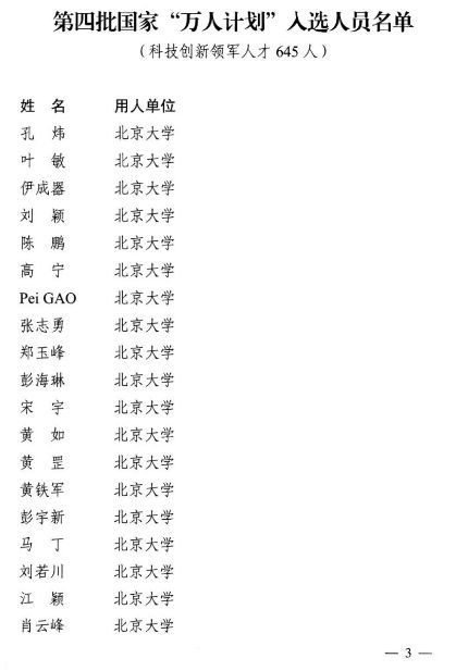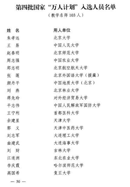 日前,中共中央组织部办公厅下发《关于印发第四批国家“万人计划”入选人员名单的通知》。第四批国家“万人计划”入选人员名单包括两个层次,共计1419人,其中科技创新领军人才645人,科技创业领军人才397人,教学名师103人;青年拔尖人才274人(自然科学类210人,哲学社会科学、人文艺术类64人)