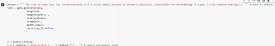 该模型具有“温度”设置,可以在0到1的范围内选择一个超参数。温度越高,模型获得的“创意”就越多,这意味着它不会添加最可能的下一个单词,而会从更大的池中采样。我们选择了0.7作为此超参数的值,这提供了看似最一致的内容创建。