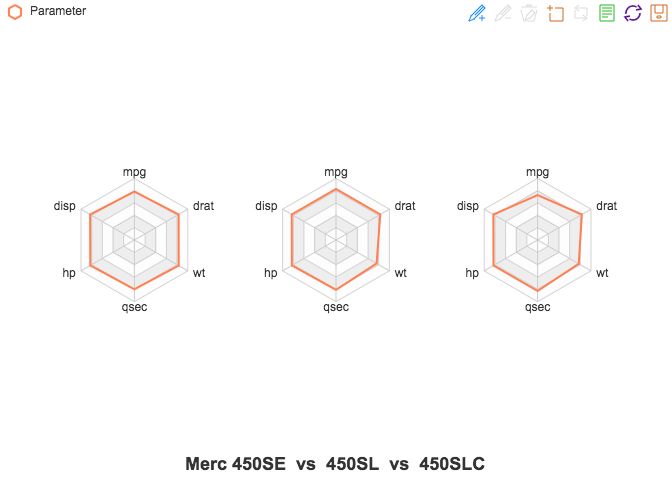 echartr(cars, indicator, Parameter, facet=model, type='radar') %>%