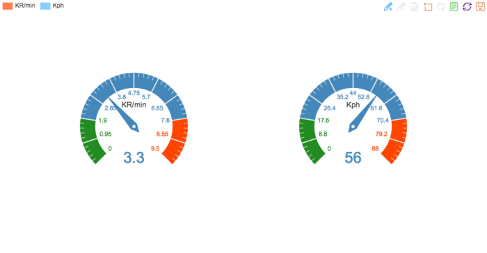data = data.frame(x=rep(c('KR/min', 'Kph'), 2), y=c(3.3, 56, 9.5, 88),