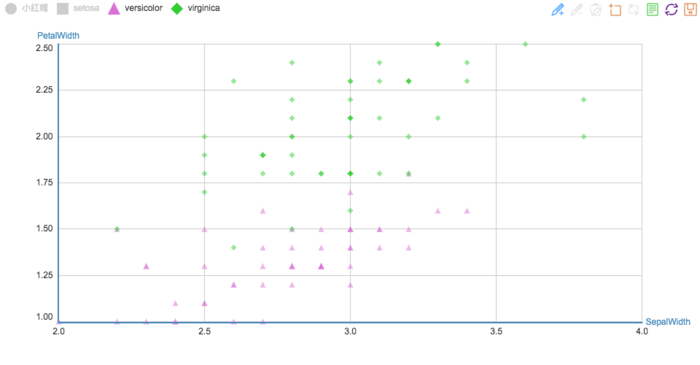 echartr(iris, x=SepalWidth, y=PetalWidth, series=Species)