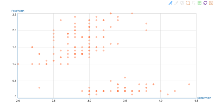 echartr(iris, x=SepalWidth, y=PetalWidth)