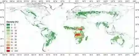 何国金团队长期致力于卫星遥感数据RTU(Ready to Use,即得即用)产品的研发。本次全球30米分辨率火烧迹地分布图成果主要是在国家重点研发计划课题“大尺度全球变化数据产品快速生成方法”的支持下开展。团队经过近两年的科技攻关,基于Landsat系列卫星数据构建了全球高精度火烧迹地和非火烧迹地样本库,利用机器学习和大数据分析技术成功研发了全球火烧迹地高精度自动化提取算法,最终在国际上首次获得全球30米分辨率火烧迹地产品(图1,为更直观地展示全球不同地区的火行为特征,对图1进行了可视化处理,统计了0.25度格网内的火烧迹地像元比例,得到图2)。利用随机分层抽样的方式在全球范围选取精度验证样区(样区的选择兼顾不同地表覆盖类型和火行为分区)进行精度验证,精度验证结果表明 GABAM 2015产品的总体精度约为93.92%。
