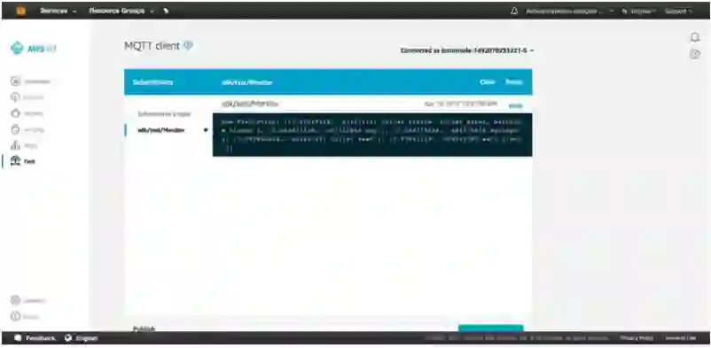 为了在 AWS 实时看到预测流,我们需要在 Test 页面中选择新主题的名称。即使网络连接很慢或掉线了,AWS IoT 也确保了数据包不会遗失,并且预测日志仍然会保持更新。