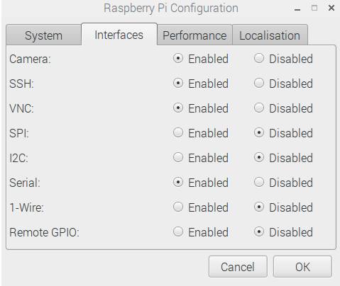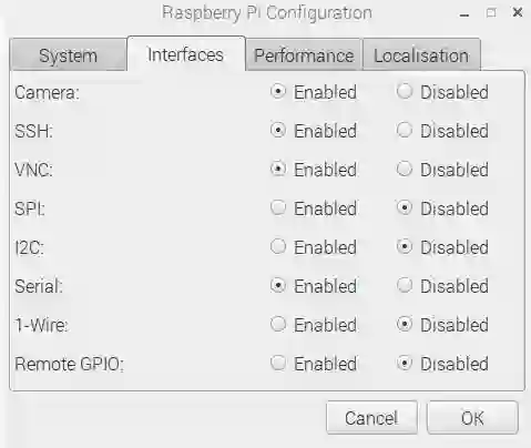 一般我们可以键入命令:sudo raspi-config,再设置启用摄像头。或者如下直接进入 Raspberry Pi Configuration 界面设置: