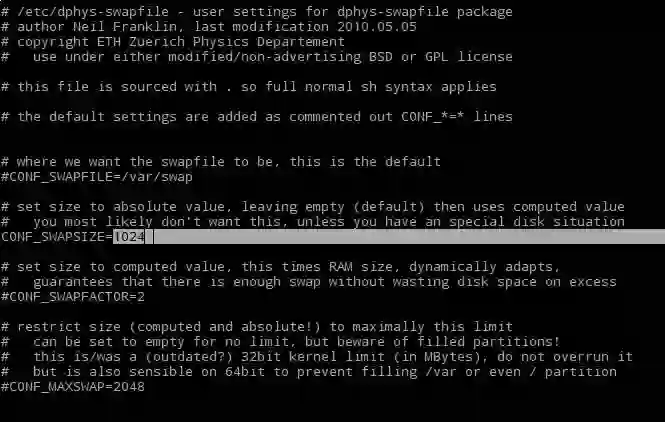 由于树莓派的内存只有 1GB,我们需要从 TF 卡分配 1GB 的存储空间作为 swap 交换空间,不然 MXNet 安装到里面会因为内存太小而报错。我们试了几种修改交换空间大小的方式(默认交换空间的大小为 100MB),最后实测可以在 root 权限下修改 dphys-swapfile 文档而实现 swap 交换空间大小的更改。即在 root 权限下键入命令 nano /etc/dphys-swapfile,然后如下图修改 CONF_SWAPSIZE=100 为 1024。最后保存文档并退出,然后重启系统。这一次重启的时间会有些增加,但只是在分配空间而已。