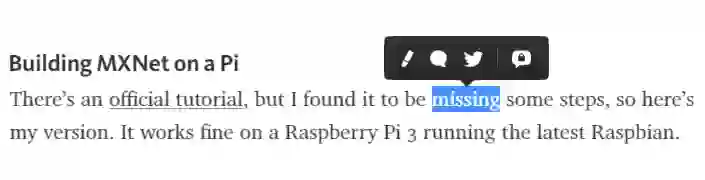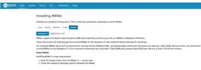 亚马逊的开源深度学习引擎 Apache MXNet 除了支持多 GPU 训练和部署复杂模型外,还可以生成非常轻量级的神经网络模型。我们也可以将这些模型表征部署到有限内存和计算力的移动端中。这就令 MXNet 可以完美地在树莓派中运行深度学习模型。